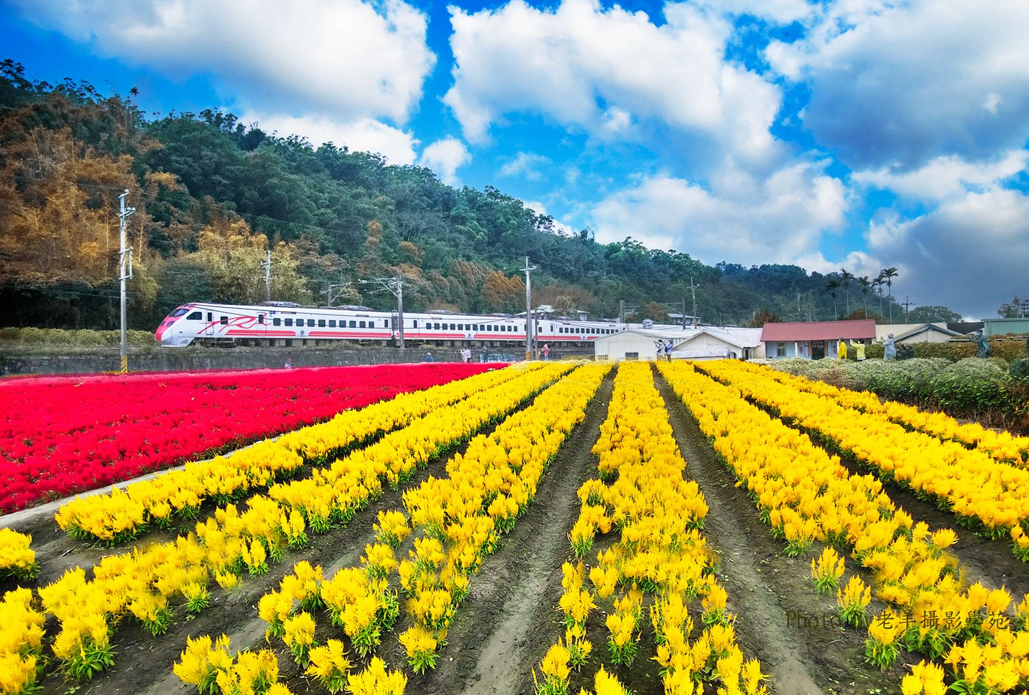 銅鑼鄉九湖村邱家農場拍採抗菊和火車